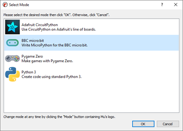 Je kan de Micro:bit ook met een echte programmeertaal programmeren. De Micro:bit ondersteund daarvoor Python. Je kan dit net als met de Scratch taal online doen (https://python.microbit.org/v/2.0), maar je kan ook een editor installeren op je computer. De editor heet Mu en daarmee kan je Python code programmeren (https://codewith.mu/en/download). Dit programma kan je ook op een usbstick zetten met PortaMu.