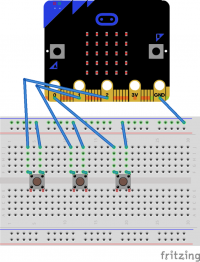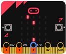 | Bovenste ledje verspringt willekeurig elke seconde (de vlieg) | Door te klikken op een knop verbonden met pin 0 en 1 verplaats je de vlieg | Door te klikken op knop verbonden met pin 2 schiet je omhoog. Je ziet de kogel telkens een rij hoger gaan. | De score gaat met één omhoog. |