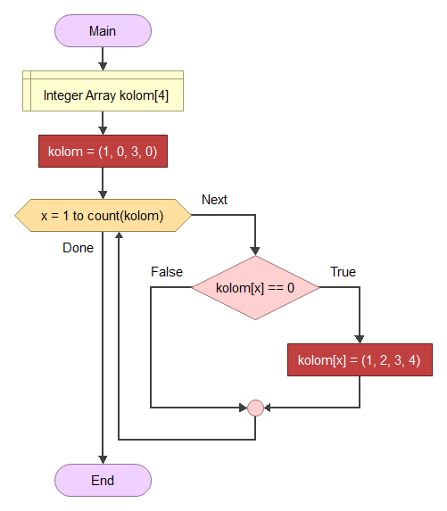 Je kan dit ook schematisch beschrijven (iets vereenvoudigde array):