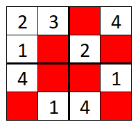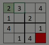 Tot nu toe hebben we alleen naar rij 1 gekeken waar we de lege waarde vervingen door alle mogelijk opties (1,2,3 en 4). Dat deden we op de volgende manier:
