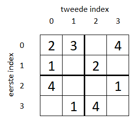 Hieronder zie je de indexen zichtbaar in relatie tot de sudoku: